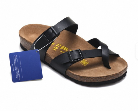 Sandalias Tipo Birkenstock para Hombre y Mujer, Chanclas de Verano con Suela de Corcho, Diseño de Cuero con Tres Correas y Antideslizantes